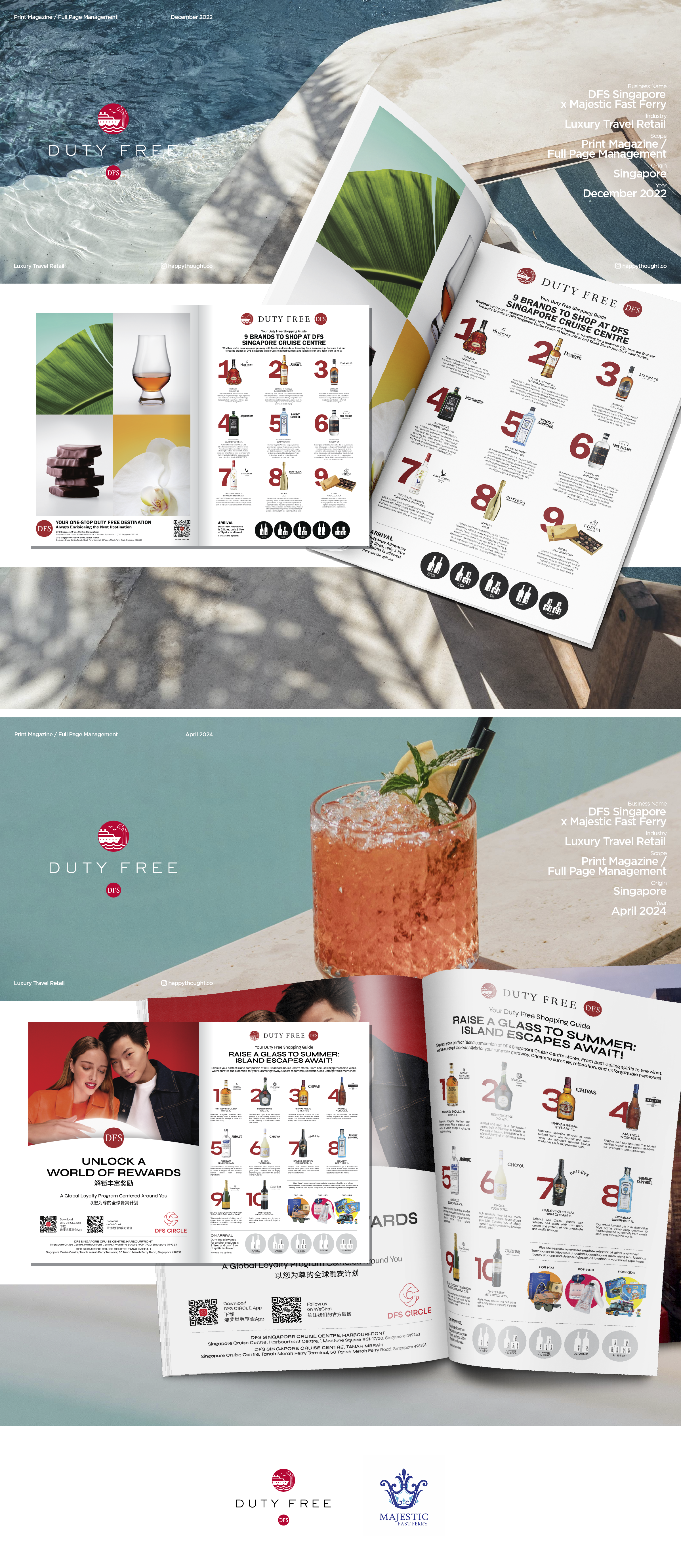 Designed for Majestic Fast Ferry passengers travelling between Batam and Singapore, this onboard magazine introduces travellers to DFS before arrival. Blending inspiration and shopping, it guides customers seamlessly from ferry to store, transforming travel time into a luxury retail discovery journey.