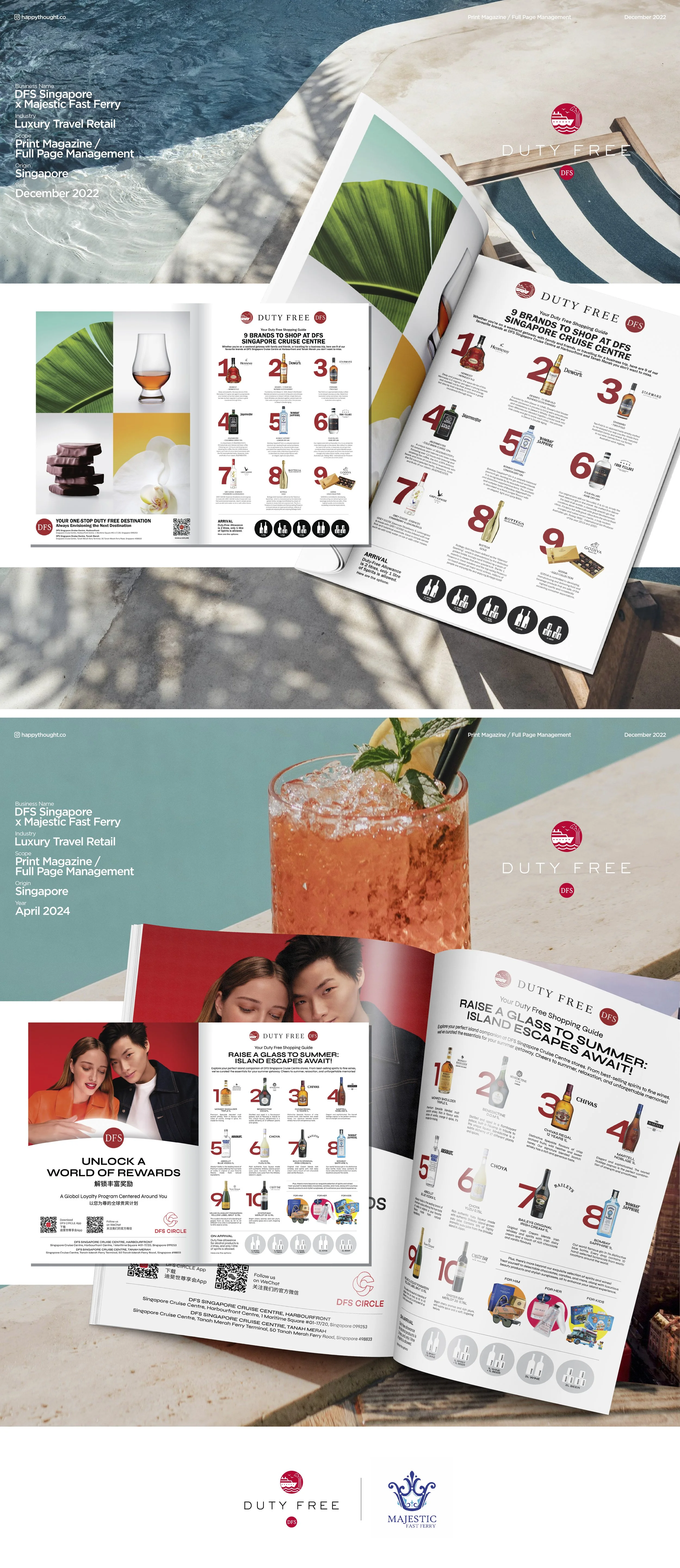 Designed for Majestic Fast Ferry passengers travelling between Batam and Singapore, this onboard magazine introduces travellers to DFS before arrival. Blending inspiration and shopping, it guides customers seamlessly from ferry to store, transforming travel time into a luxury retail discovery journey.